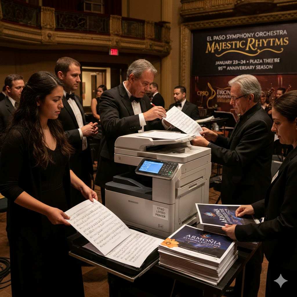 El Paso printer leasing helps the El Paso Symphony Orchestra (EPSO) produce flawless, professional-quality sheet music. Orchestras require precise scores with specialized formats, and owning a printer outright can be costly and inefficient.
